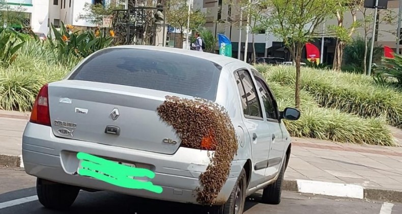Um enxame transitório havia se instalado na traseira de um Renault Clio, causando preocupação entre pedestres e motoristas, já que algumas pessoas relataram terem sido atacadas por abelhas.
